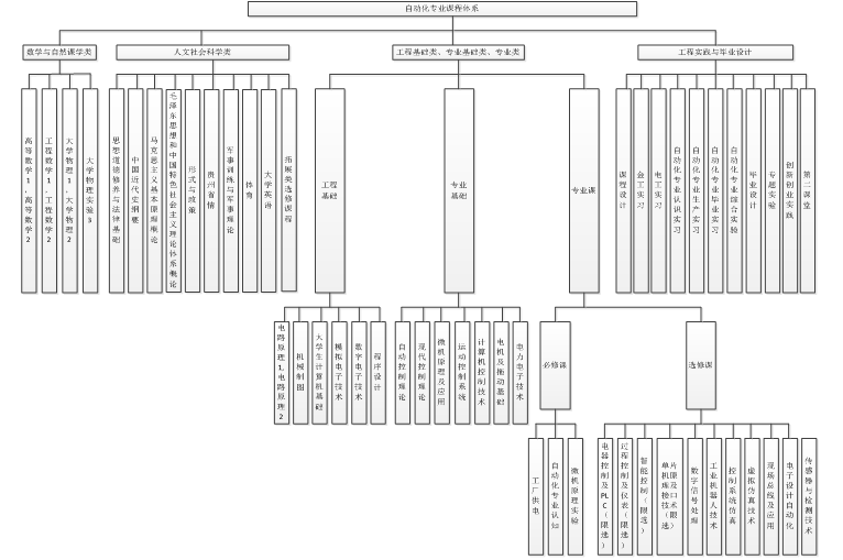 本專業(yè)畢業(yè)學分要求:學生在學期間的最低畢業(yè)學分為173學分。依據(jù)《關(guān)于修訂貴州大學2016版本科專業(yè)培養(yǎng)方案的通知,對照工程教育專業(yè)認證的課程類別要求,本專業(yè)的課程體系架構(gòu)如下圖所示。