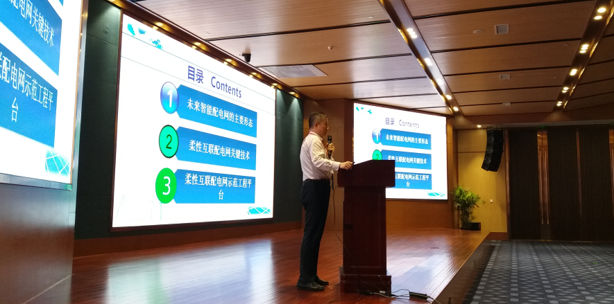 貴州大學(xué)常務(wù)副校長(zhǎng)王紅蕾對(duì)《柔性配電網(wǎng)關(guān)鍵技術(shù)及其應(yīng)用》做主題報(bào)告。報(bào)告中不僅詳細(xì)闡述了柔性互聯(lián)配電在設(shè)備控制、配電網(wǎng)運(yùn)行、配電網(wǎng)規(guī)劃三個(gè)層面的關(guān)鍵技術(shù),還詳細(xì)介紹了貴州大學(xué)與貴州電網(wǎng)有限責(zé)任公司共同承擔(dān)的“城市配電網(wǎng)柔性互聯(lián)關(guān)鍵設(shè)備及技術(shù)的研究”及“面向能源互聯(lián)網(wǎng)的配網(wǎng)側(cè)/需求側(cè)綜合能源管理技術(shù)研究與示范”工程建設(shè)情況。