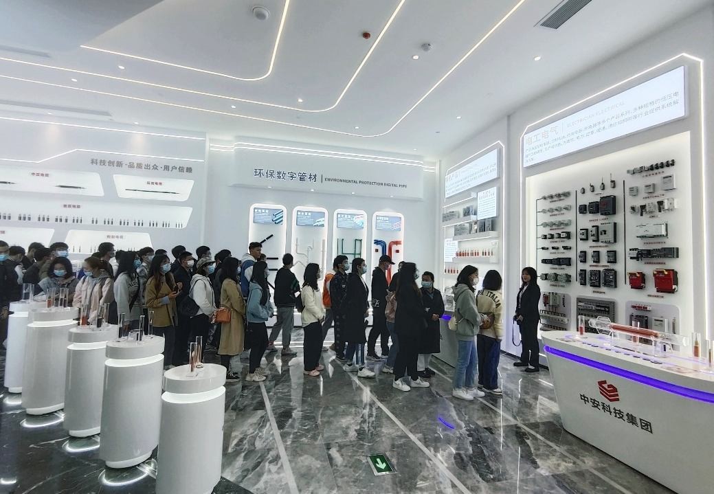 隨后,中安科技集團宣傳部帶領(lǐng)學(xué)生到線纜科技展廳、智能化生產(chǎn)車車間現(xiàn)場進行參觀學(xué)習(xí)。