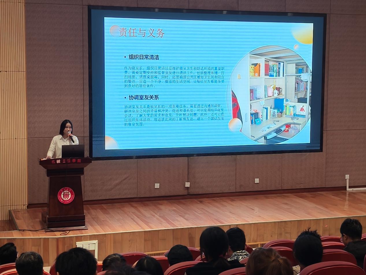 為進(jìn)一步提升班級管理和寢室管理的效能,加強(qiáng)學(xué)生干部隊(duì)伍的建設(shè),學(xué)院于10月22日在機(jī)械學(xué)院圓形報告廳舉行2024級新生班委班干技能暨第一次寢室長培訓(xùn)會,2024級輔導(dǎo)員羅鑫老師主講。