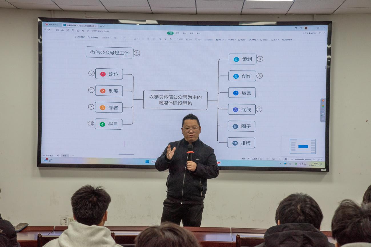 2024年11月21日,為了提升學(xué)院融媒體成員的工作能力,為學(xué)院微信公眾號(hào)的建設(shè)提供新思路,學(xué)院邀請(qǐng)學(xué)校宣傳部龐愛忠老師在電工院609會(huì)議室為同學(xué)們進(jìn)行工作能力培訓(xùn)。學(xué)院融媒體中心全體成員、2024級(jí)全體宣傳委員參加會(huì)議。
