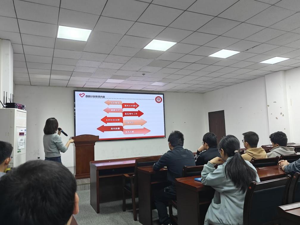 為積極響應“西部計劃”戰(zhàn)略號召,引導青年學子扎根西部奉獻青春,2025年4月25日,學院在電工樓609召開西部計劃宣講動員會,本次宣講動員會由學院團委書記余紅主講,2021級、2022級學生代表參加。