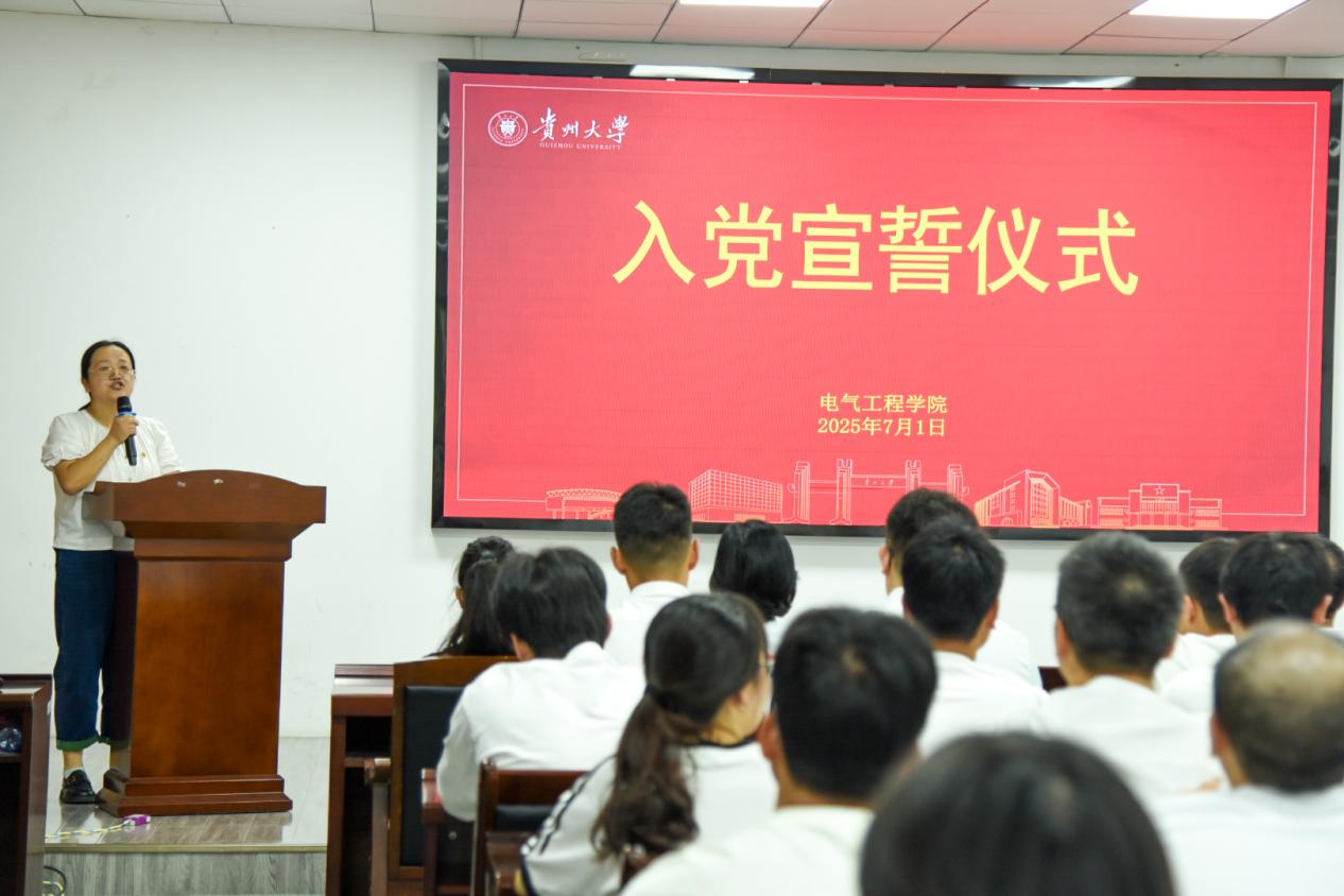 2025年7月1日中午,學(xué)院黨委于電工樓609會(huì)議室隆重舉行新黨員入黨宣誓儀式。儀式由學(xué)生科科長陳倩主持,學(xué)院黨委書記劉明鋒、正處級(jí)組織員侯亞兵、黨委副書記趙曉丹、學(xué)院關(guān)工委成員李小平等老黨員代表、2025年上半年入黨的38名預(yù)備黨員參加。