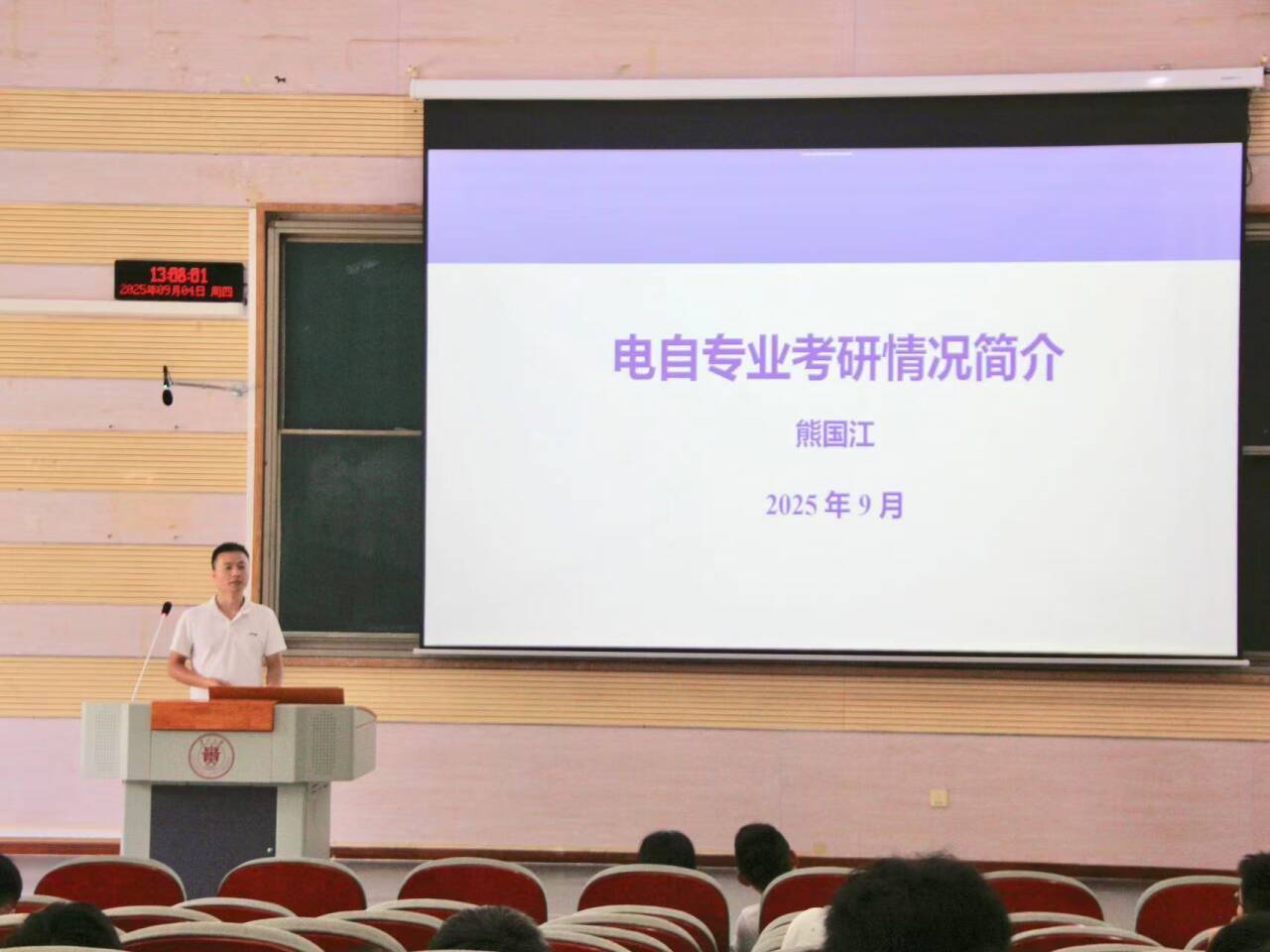 隨后,學(xué)院各系主任分別展開考研指導(dǎo)。電力系副主任熊國江教授對比本科生與研究生就業(yè)差異,指出研究生在電網(wǎng)就業(yè)集中度更高、崗位更好、發(fā)展空間更大,建議有數(shù)學(xué)和英語基礎(chǔ)的同學(xué)優(yōu)先報(bào)考學(xué)碩。測控技術(shù)與儀器系主任張梅副教授分析了本專業(yè)就業(yè)現(xiàn)狀,建議學(xué)子堅(jiān)定考研決心,盡早準(zhǔn)備,拓寬擇校視野,并表示專業(yè)老師會提供信息與資源支持。能源與動力工程系主任龔德鴻副教授結(jié)合就業(yè)壓力與學(xué)歷貶值現(xiàn)狀,鼓勵(lì)學(xué)子抓住考研機(jī)會,并介紹了本專業(yè)考研分?jǐn)?shù)情況與就業(yè)方向。自動化系主任王霄副教授從學(xué)碩與專碩的培養(yǎng)方向、初試科目、畢業(yè)去向出發(fā),為學(xué)子提供選擇建議,強(qiáng)調(diào)數(shù)學(xué)與英語學(xué)習(xí)的重要性。